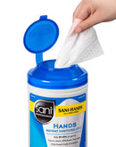 Sani-Hands Instant Hand Sanitizing Wipes remove soil and bacteria and kill 99.99% of germs. They contain an alcohol based formula as recommended by the CDC for hand hygiene. In a clinical study, Sani-Hands exceeded the strict performance criteria defined in the FDA. The performance is enhanced by the physical removal of soil and bacteria by the wipe, a function that rub-in alcohol-based handwashes alone cannot accomplish.
